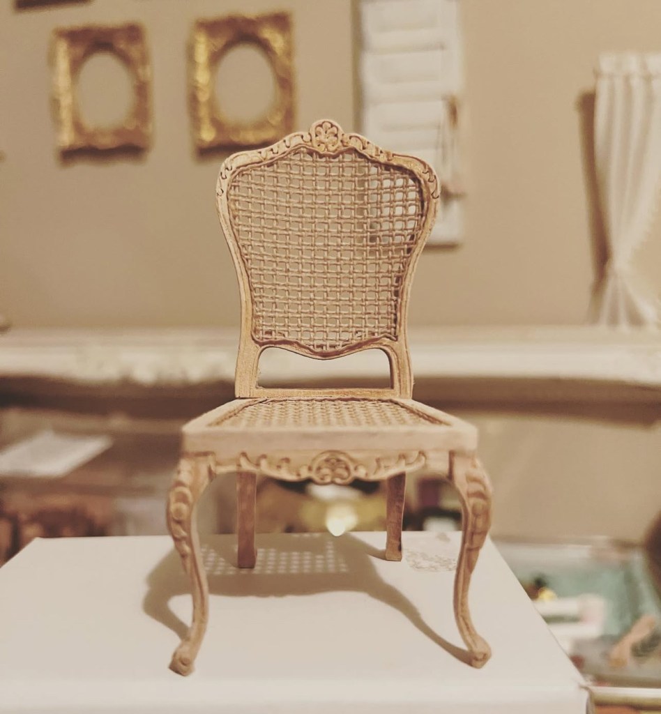 There’s something about the elegance of its curved legs, the delicately carved trim, and that perfect woven cane seat and back—it’s as if it belongs in a grand Parisian salon, only shrunk down to fit in the palm of my hand.